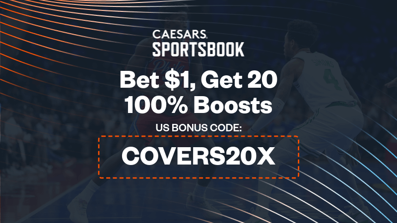 Caesars Sportsbook promo code COVERS20X offer details for Celtics vs 76ers